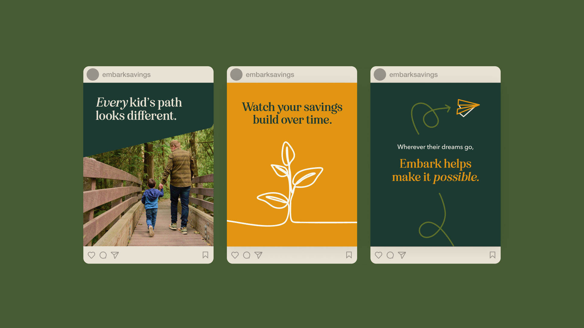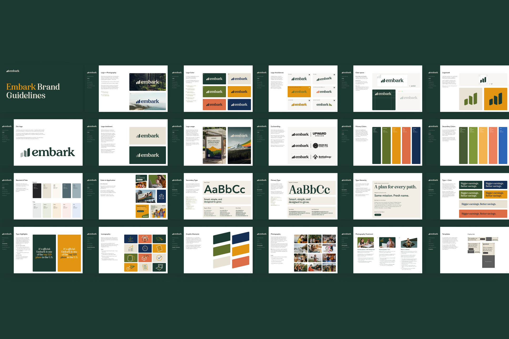 For this project, I helped lead the full rebrand of the Oregon College Savings Plan (now Embark Savings). Working closely with cross-functional teams at Thesis, I helped shape a new identity that feels flexible, warm, and genuinely inclusive. Embark positions the program as a future-forward partner for every kind of learner, giving Oregon families permission to define education on their own terms.